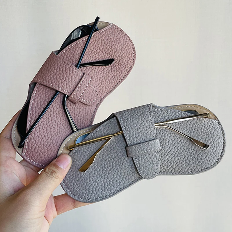PU Leather Portable Glasses Bag Sunglasses Storage Bags Men and Women Car Glasses Protective Cover Anti-crushing Glasses Clip